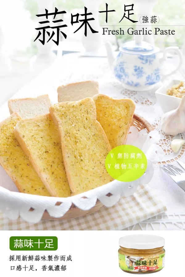 蒜味十足(植物五辛素)-採用新鮮蒜味製作而成,口感十足,香氣濃郁!